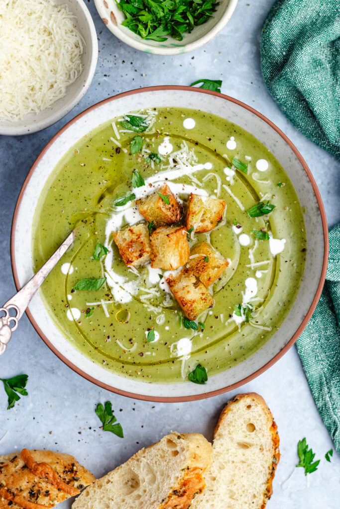 - Spice it up – This zucchini soup has a mild and rich flavour, if you like it spicy, add some red pepper flakes to taste or top with a drizzle of chili oil.